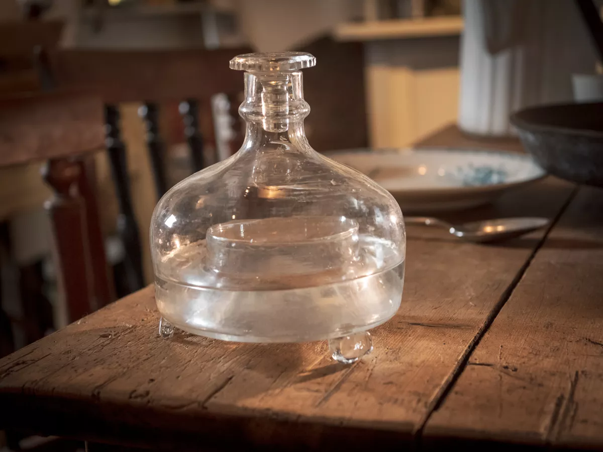 Das Fliegenglas in unserem Museum ist vielen Besuchern immer wieder ein Rätsel. Es ist eine traditionelle Version einer Insektenfalle, auch als Wespenglas oder Fliegenfangglas bezeichnet.