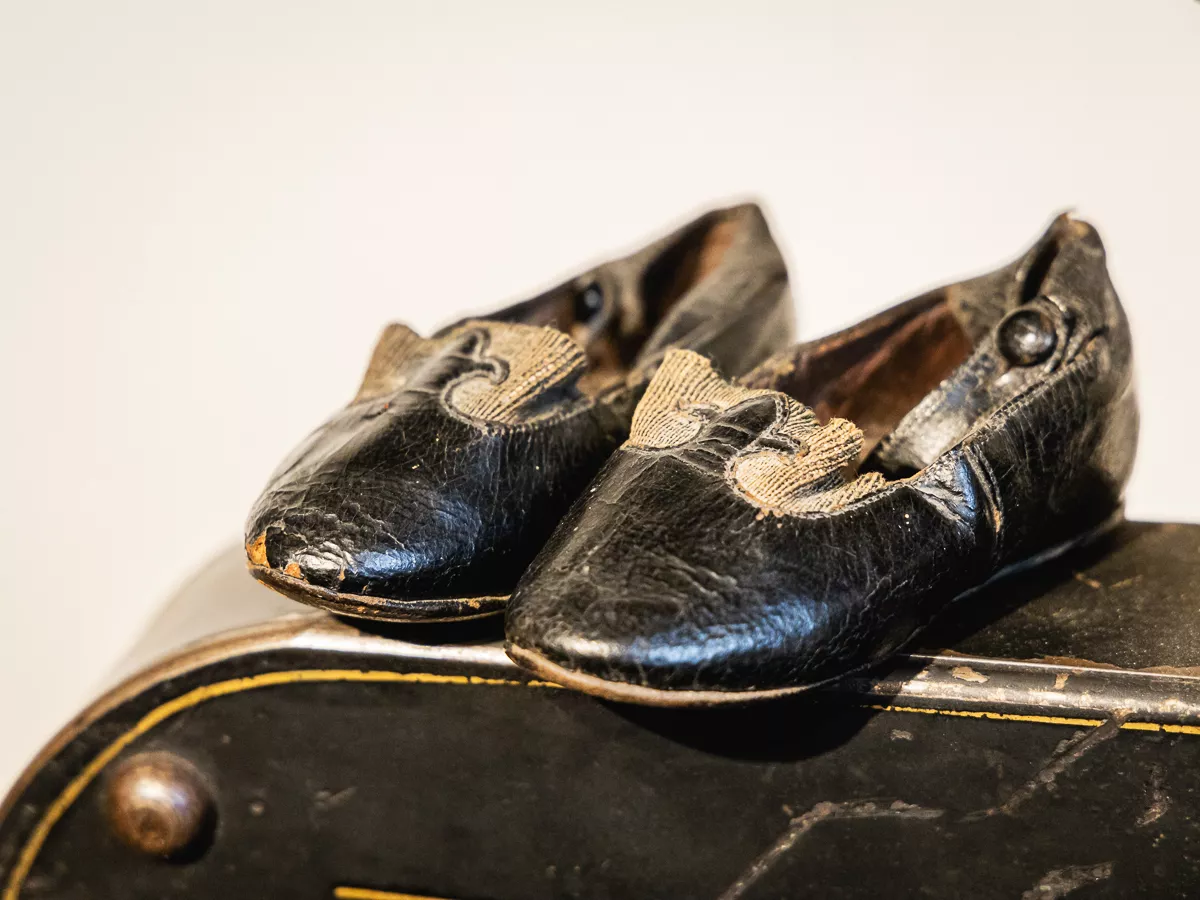 Der hiesige Schumacher Gaßmann hat diese Kinderschuhe im Jahr 1900 für seinen Sohn hergestellt.