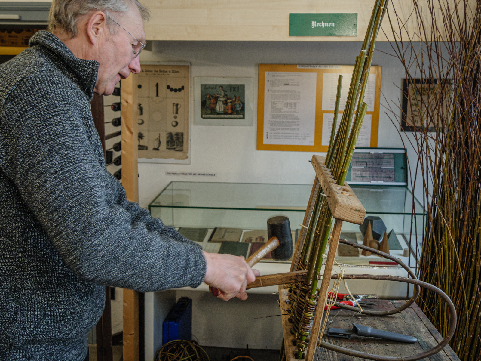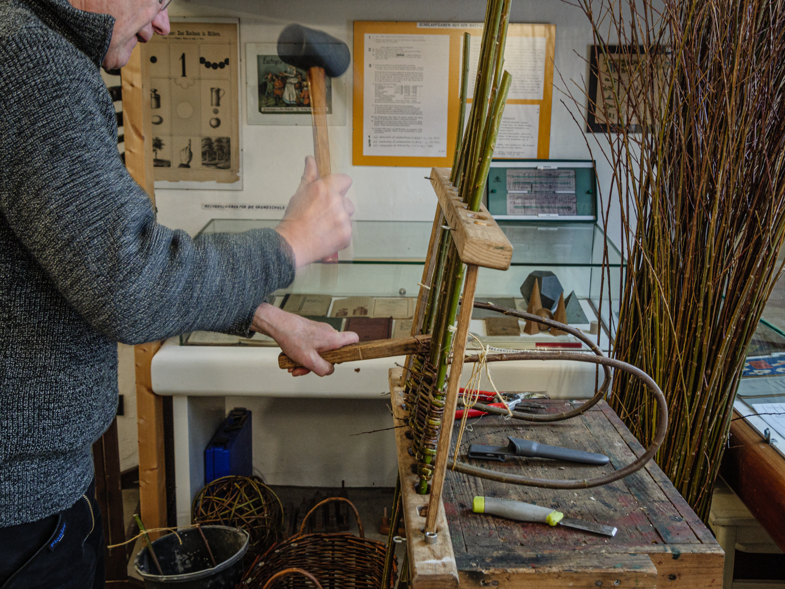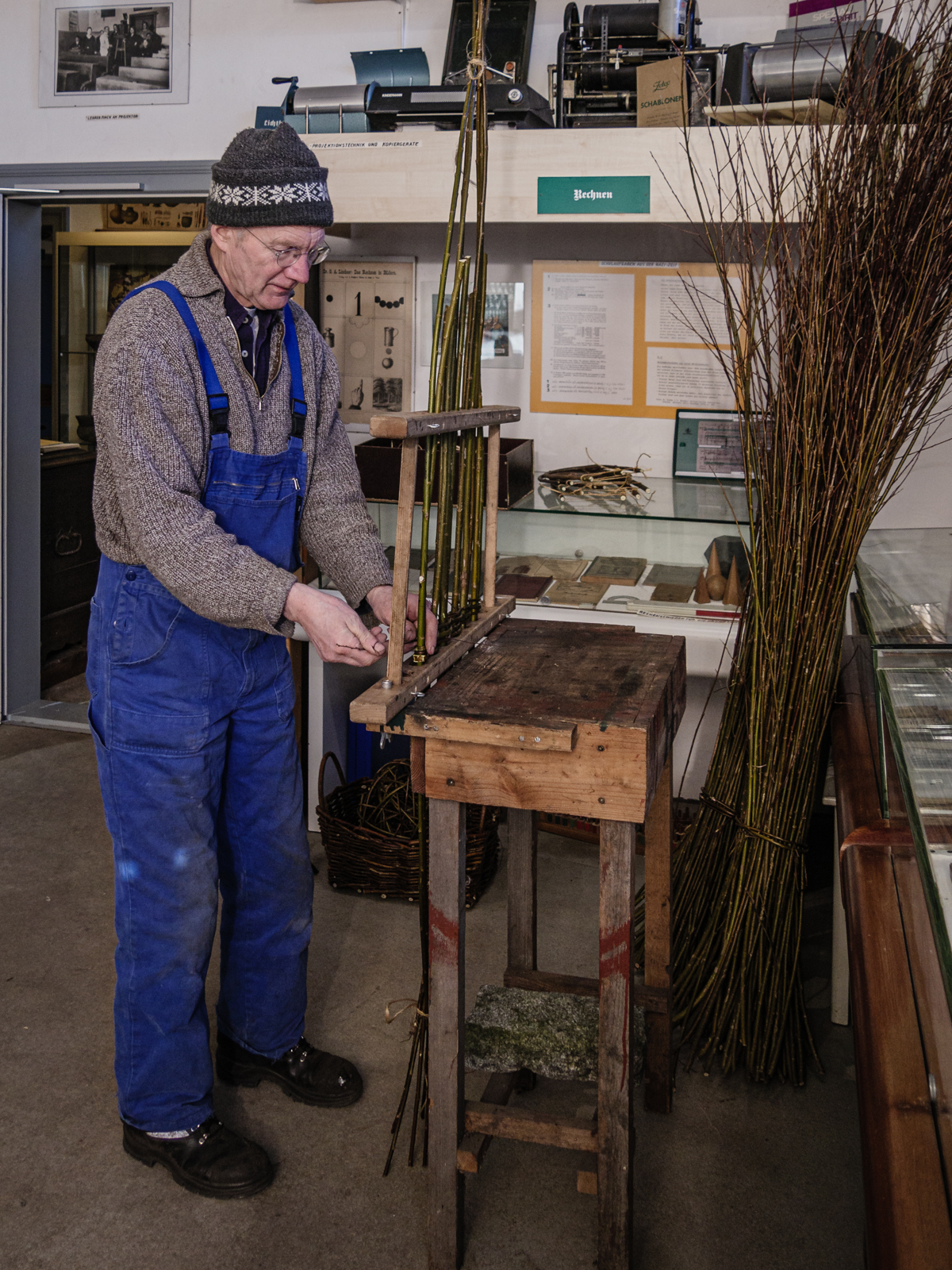 Im März 2018 war Hans Hinrich schon einmal im Museum und hat vorgeführt wie Weidenkörbe geflochten werden.
