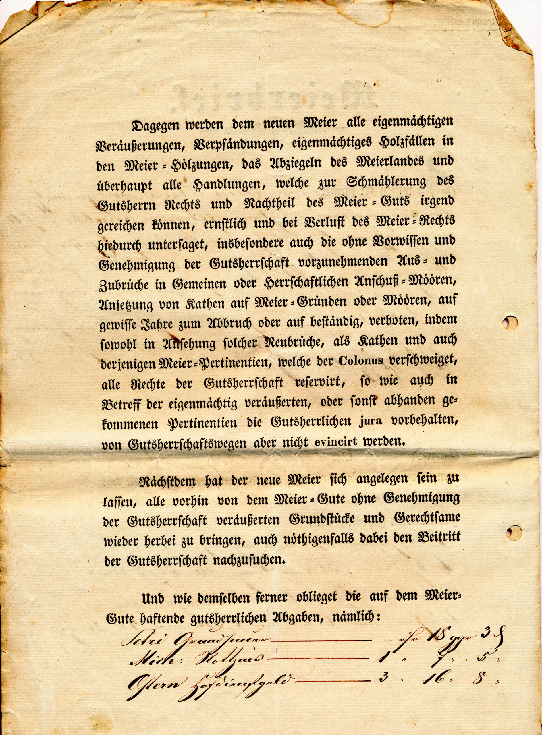 Ein Meierbrief war die vertragliche Regelung zwischen dem Großgrundbesitzer und seinem Pachtbauern. Es wurden Rechte und Pflichten sowie Abgaben und Leistungen geregelt.