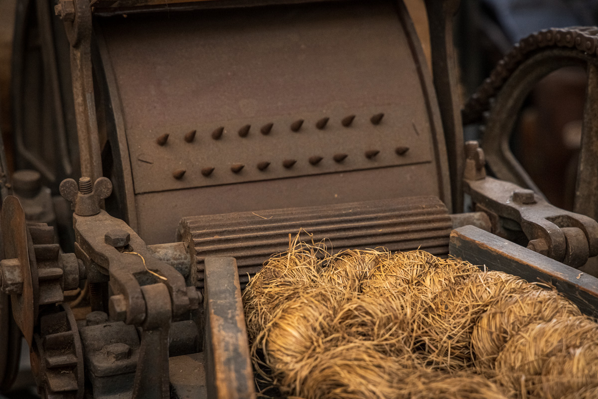 Etwas in die Ecke gedrückt zwischen Stellmacherei und Böttcherei steht im Heimat- und Schulmuseum eine Rofshaar Zupfmaschine. Wir mussten auch erst googln um Details dazu zu erfahren.